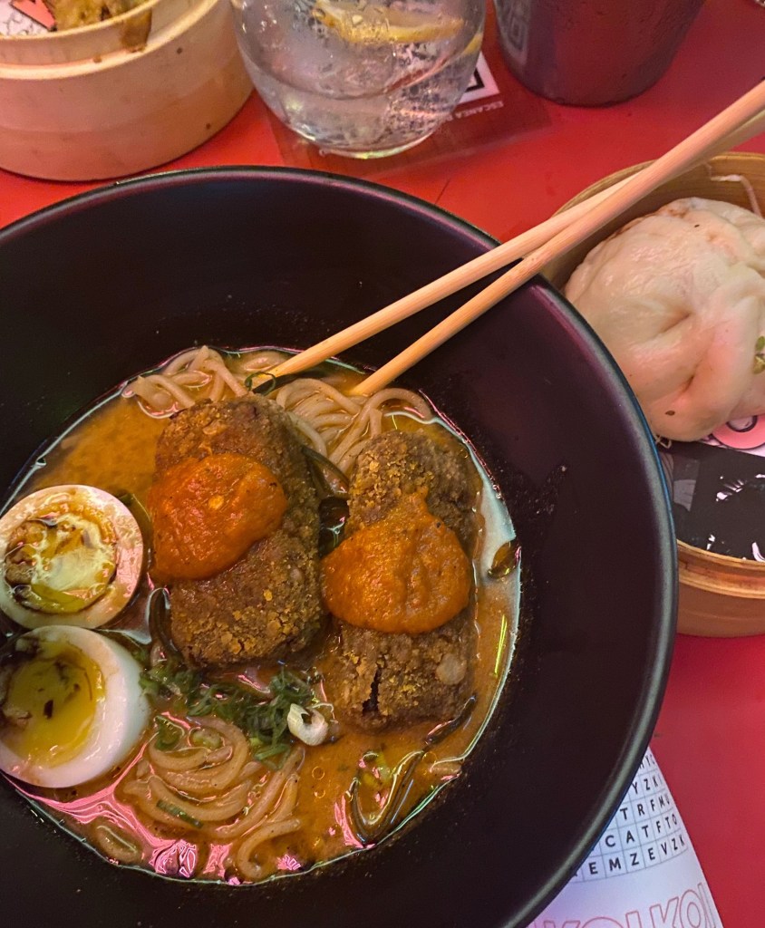 Koi is a chain Japanese place. It feels a bit like stepping into a comic, because all of the wall art is designed to be like printed pages. It’s neon, manga-style, fun, vibrant, and modern. Ramen is my favourite meal, and so I wanted to go here for my less formal birthweek meal with some friends. There are various restaurants all over the city, and as with any chain the standard differs slightly restaurant to restaurant. The ramen is good, not the best, but definitely good, as are the bao and the dumplings. I went a few times because it is a cheap, delicious eat, and the vegetarian menu is pretty extensive. The interior is definitely what sets Koi apart, it feels like a holiday within a holiday.